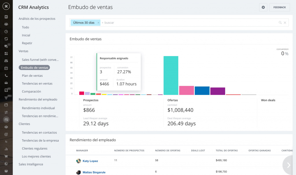 Sin embargo, el embudo de conversión no toma en consideración los estados intermedios si el elemento ha sido perdido. Esto hace que sea fácil ver las etapas problemáticas donde los prospectos o negociaciones se pierden con mayor frecuencia.