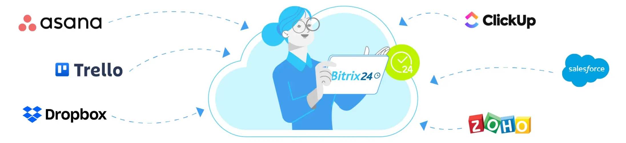Bitrix24 incluye decenas de integraciones disponibles en Bitrix24 Market. También puedes crear tus propias aplicaciones utilizando nuestra API REST.