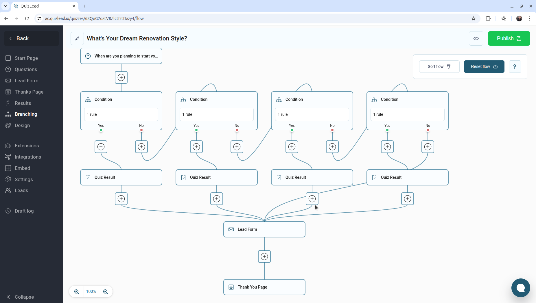 Pero QuizLead no se trata solo de idioma, también se trata de lógica. La plataforma te permite crear rutas de cuestionario personalizadas utilizando una lógica condicional avanzada y ramificaciones. Esto significa que el cuestionario puede adaptarse a las respuestas de cada usuario, llevándolos por caminos diferentes según lo que respondan. Este nivel de personalización te ayuda a recopilar mejor información y ofrecer una experiencia más relevante, ya sea que estés cualificando leads, recomendando productos o simplemente haciendo que tu cuestionario sea más entretenido.