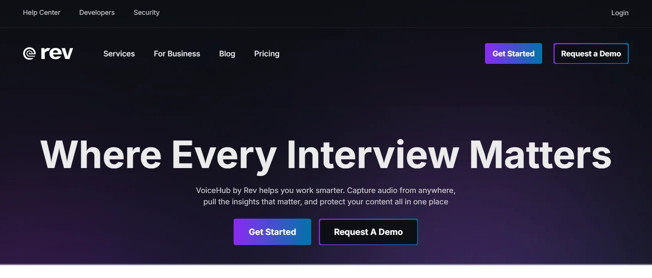 Otra de las herramientas para transcripción de reuniones más completas del mercado es Rev.com, aplicación enfocada en la productividad y la seguridad. Al igual que otras alternativas a Otter.ai, se conecta directamente con Google Meet, Microsoft Teams y Zoom, simplificando el proceso de transcripción. De hecho, el mismo puede realizarse en directo y Rev.com posibilita marcar momentos clave al instante.