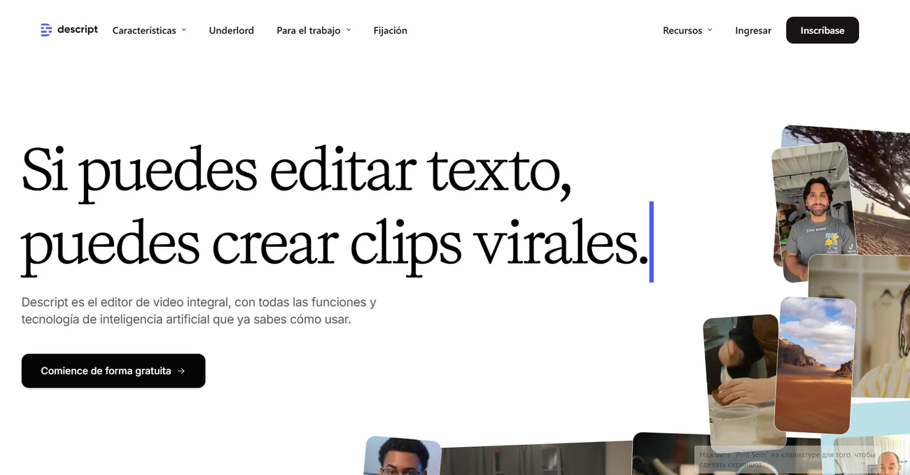 Descript cierra nuestra lista de alternativas a Otter.ai. Esta herramienta de edición de audio y vídeo pone el foco en la creatividad, aunque también cuenta con una poderosa solución de transcripción. Si buscas una plataforma todo en uno para generar contenido, esta puede ser la mejor elección.