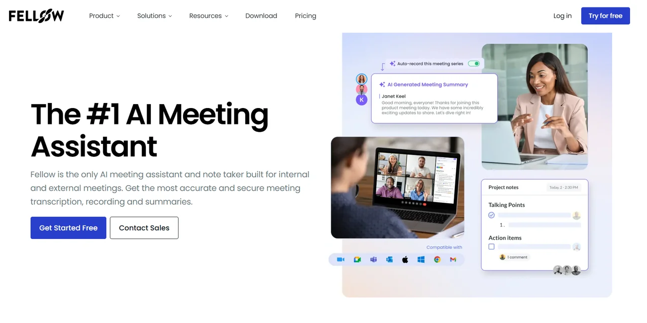 Fellow se integra con más de 50 herramientas de productividad que muchas empresas emplean de manera regular, como Zoom, Slack, Asana, Zapier y Google Meet. Está disponible con plan gratis con hasta 5 transcripciones de IA y grabaciones incluidas. Si necesitas mayores funciones, deberás optar por un plan de pago.