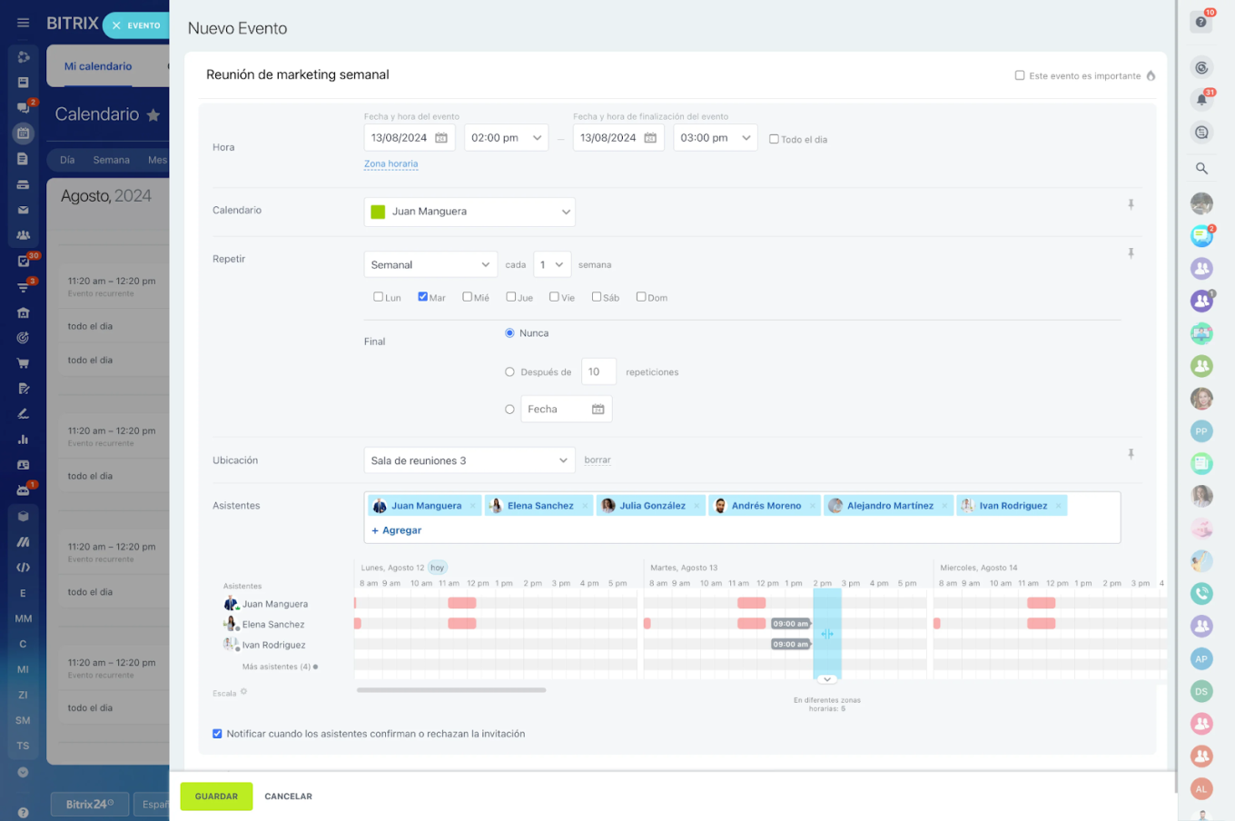 Aquí es donde la automatización de Bitrix24 entra en juego. Puedes utilizar el módulo de Marketing en el CRM para segmentar automáticamente a los nuevos usuarios y disparar invitaciones a sesiones grupales o entrenamientos específicos. Además, el Calendario compartido permite que el cliente agende su propia sesión de bienvenida según la disponibilidad real de tu equipo, eliminando la fricción del intercambio de correos. Es tecnología trabajando para humanizar la relación desde el primer día.