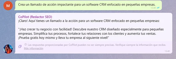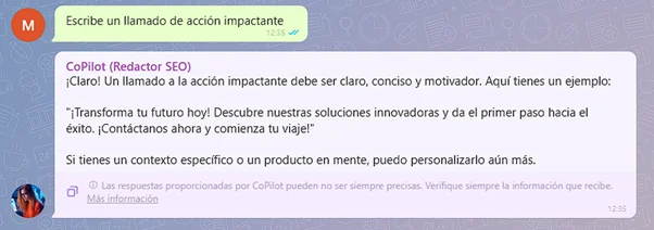 Veamos qué pasa cuando le pides a CoPilot que escriba “un llamado de acción impactante”: