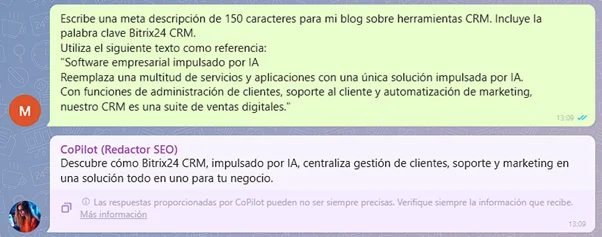 Bitrix24 y su integración con CoPilot, te permite crear interacciones automatizadas y personalizadas con la IA, optimizando procesos de atención al cliente, marketing y ventas. La capacidad de diseñar prompts específicos y efectivos dentro de un entorno como Bitrix24 significa que tu equipo puede trabajar con mayor eficiencia y precisión.