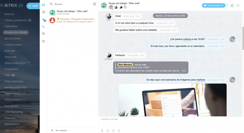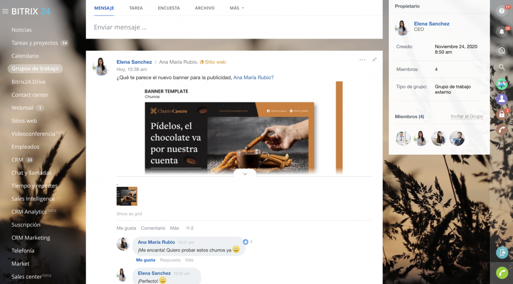 Los grupos de trabajo en Bitrix24 son esencialmente una comunidad virtual online de usuarios creada específicamente con el propósito de trabajar juntos en un proyecto por medio de: