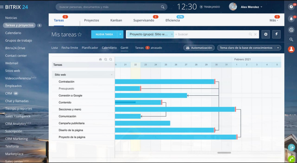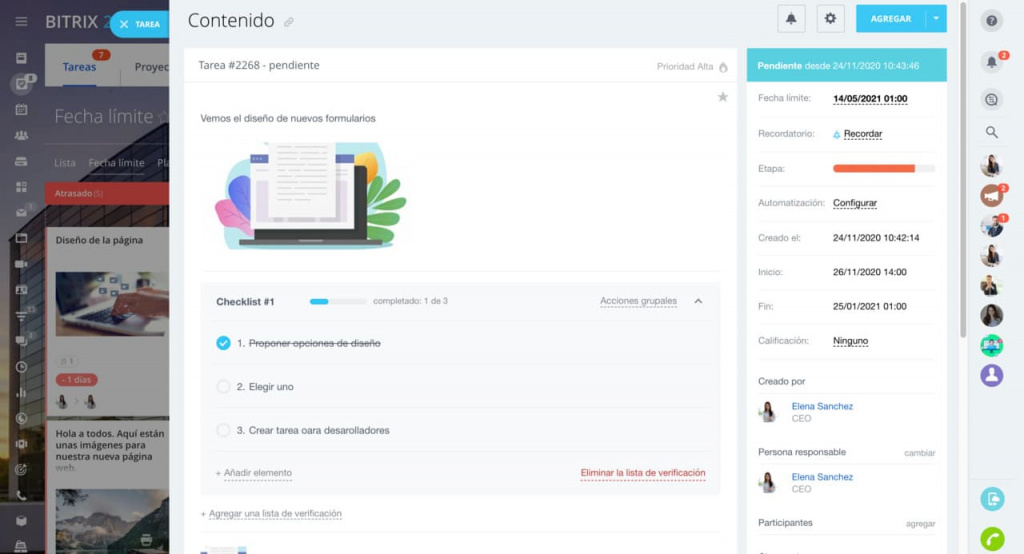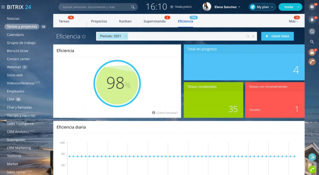 Trabajar con tareas y administrarlas es muy fácil en Bitrix24, ya que tenemos todo lo que un administrador de proyectos puede necesitar para administrar los proyectos de forma remota.