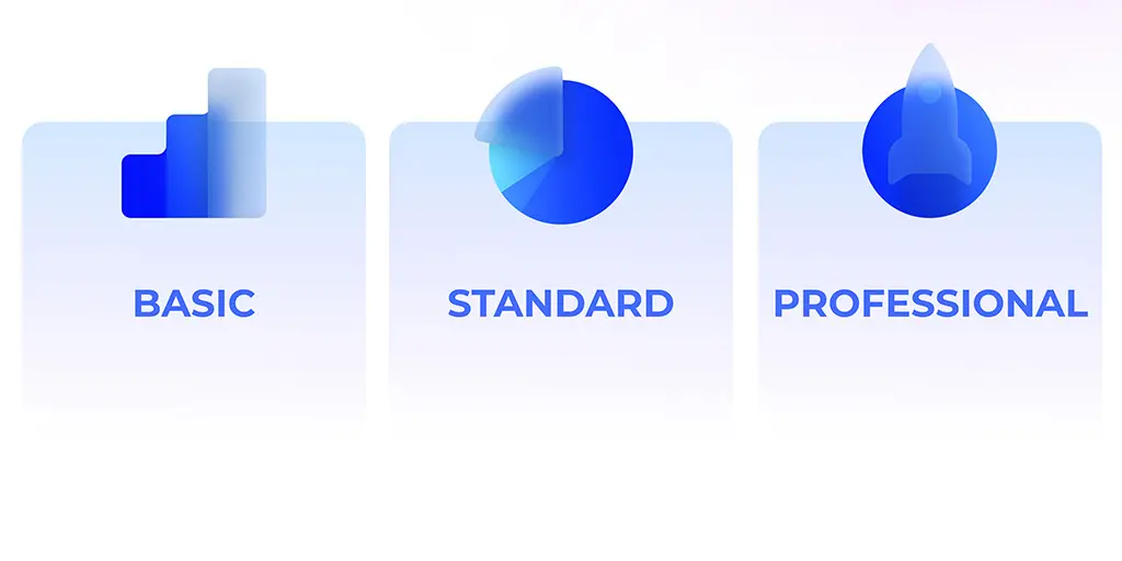 Además del plan gratuito, también tenemos 3 planes de pago por suscripción (BASIC, STANDARD, y PROFESSIONAL). Cada uno de ellos aborda las necesidades de diferentes tipos de equipos/negocios, con una combinación de capacidades justa frente al precio, maximizando el valor del producto.