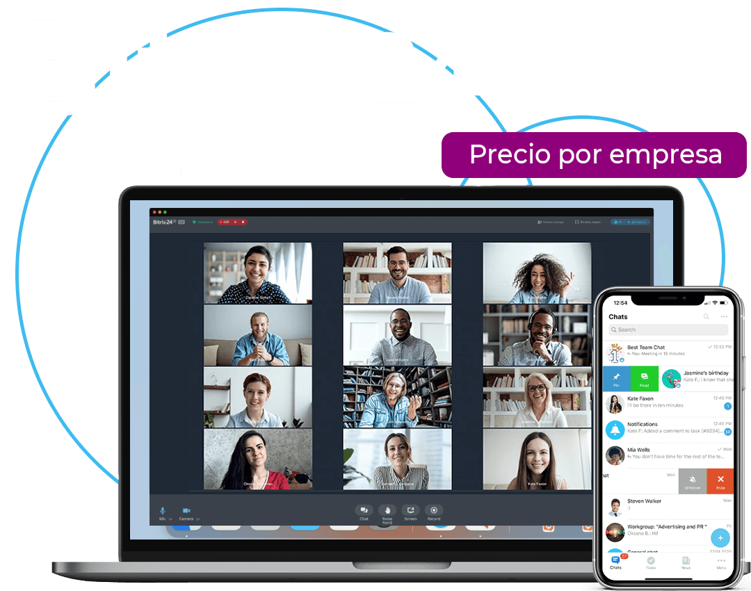 Imagínate cuánto pagarías si tuvieras que comprar CRM, gestión de proyectos, herramientas de comunicación y más para cada usuario individual. Al elegir Bitrix24, todo tu equipo tendrá acceso a todas las funciones que necesitan por un precio fijo.