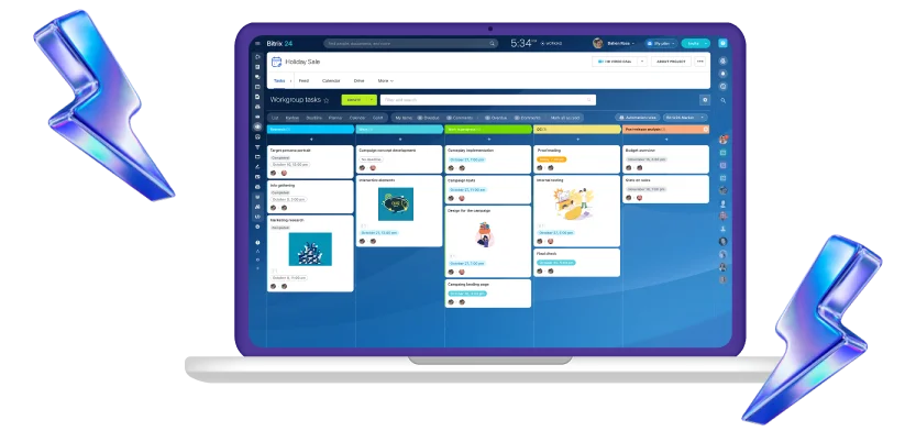 La oferta Cyber Weekend de Bitrix24 2024 es válida del 29 de noviembre al 2 de diciembre de 2024 para suscripciones de 12 meses para planes en la nube Professional y Enterprise. Los descuentos están disponibles solo para los suscriptores del plan gratuito de Bitrix24 que nunca hayan tenido una suscripción comercial. Esta oferta no se puede combinar con otros descuentos u ofertas especiales, ni se puede extender más allá del período de suscripción original adquirido con este descuento. Todas las renovaciones de suscripción futuras se facturarán al precio regular. Si tienes alguna pregunta, comunícate con tu partner local de Bitrix24 o envíanos un correo electrónico a sales@bitrix24.com.