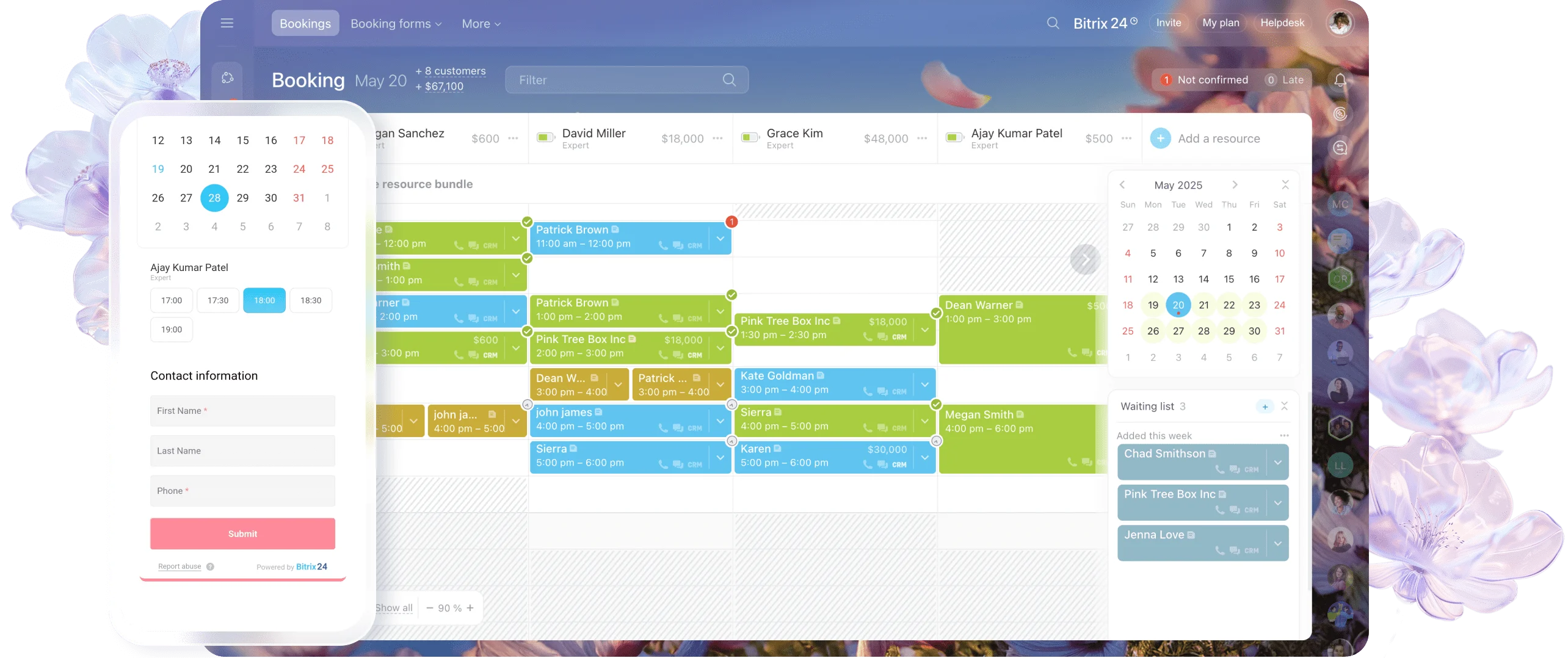 Cada reserva se registra automáticamente en tu CRM, con la información del cliente, el servicio elegido y el especialista asignado. No hay que ingresar nada a mano — todo permanece sincronizado.