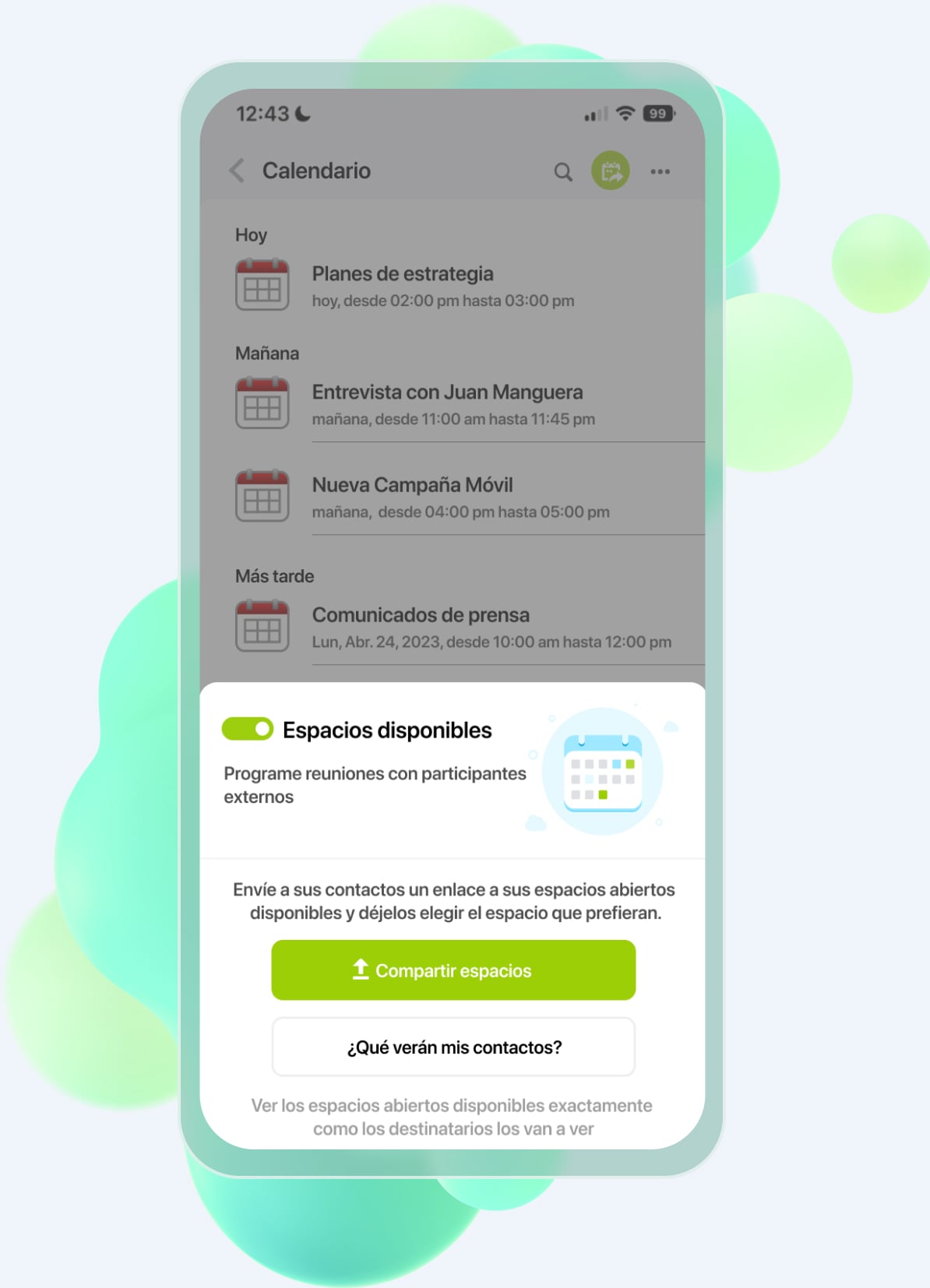 Fácil de usar: envía un enlace a tu calendario por correo electrónico, messenger o SMS