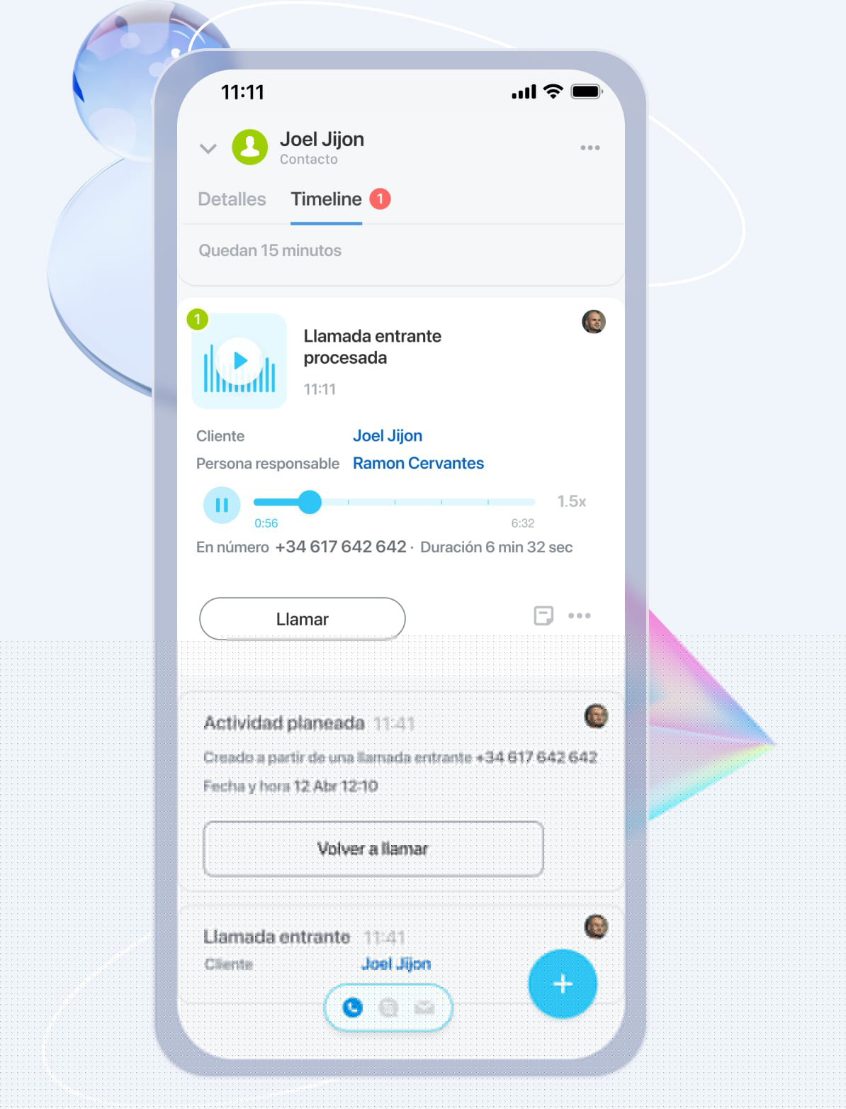 Las llamadas entrantes y salientes se pueden grabar y guardar en la negociación de CRM respectiva.