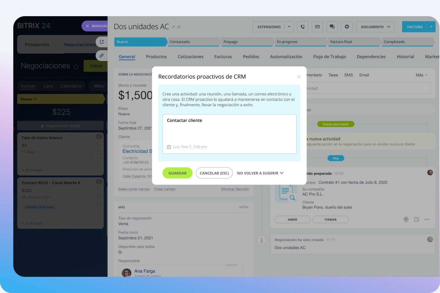 Nuestro CRM proactivo siempre está ahí para ayudar