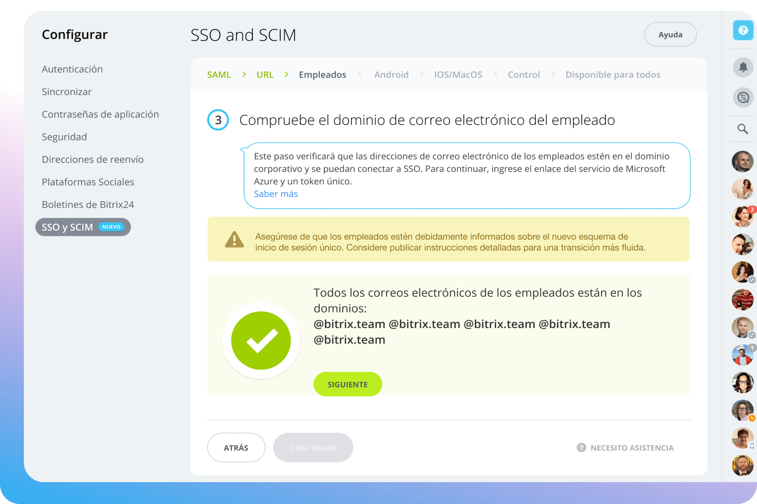 Permite que tus empleados usen una sola identificación para iniciar sesión en varias aplicaciones y servicios, incluido Bitrix24