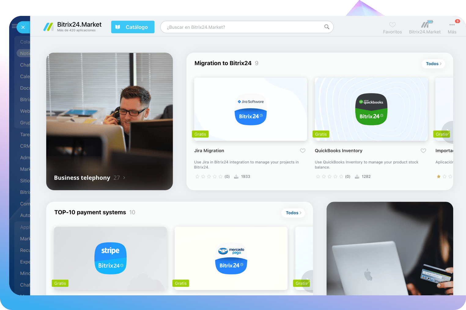Con un diseño y navegación completamente nuevos, Bitrix24 Market ahora te facilita encontrar la solución adecuada para mejorar el rendimiento de Bitrix24.