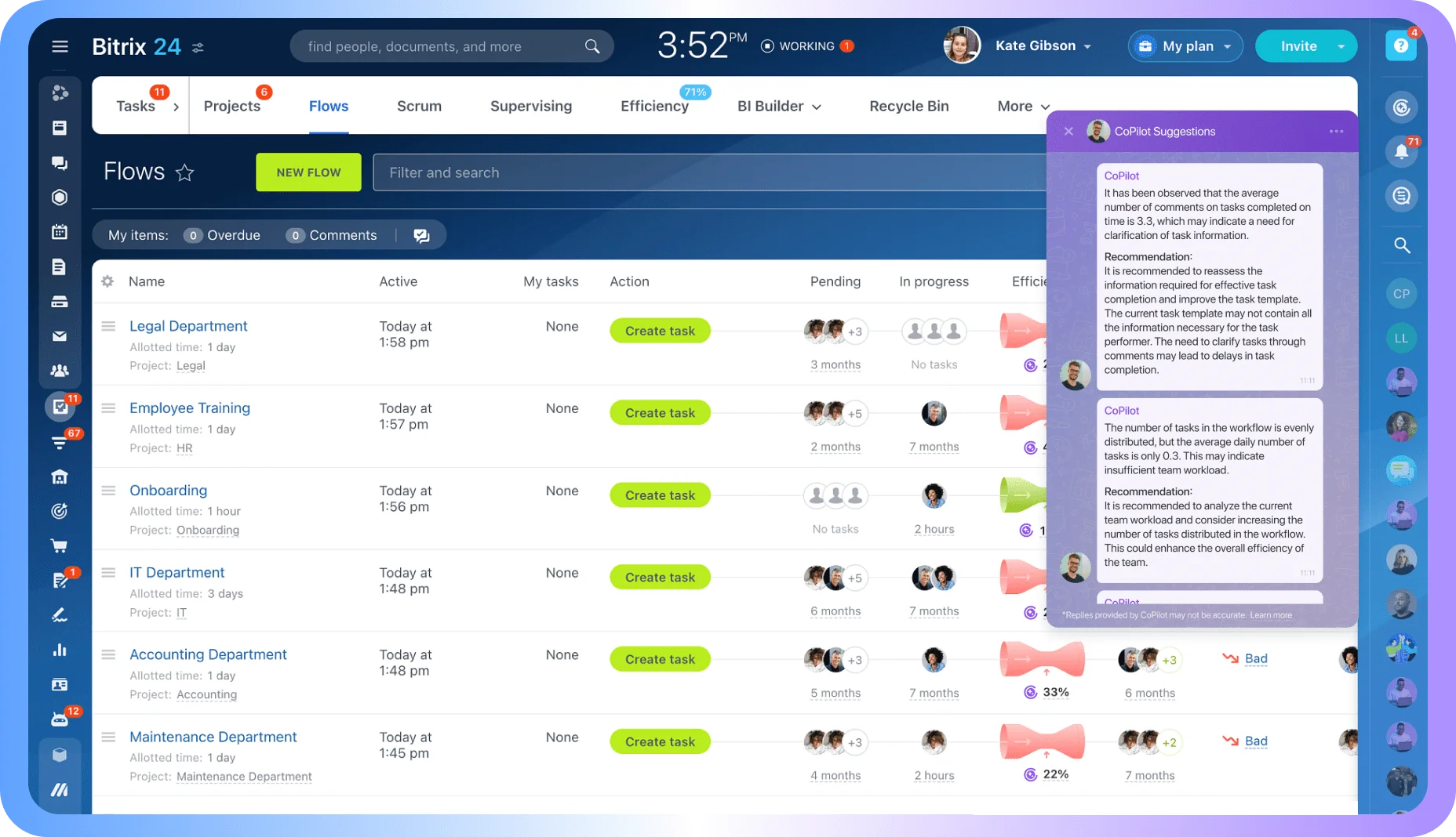 Con CoPilot analizando tus flujos en tiempo real, puedes obtener informes generados por IA sobre la eficiencia de los flujos y recomendaciones para aumentarla. Esto te permite identificar y solucionar posibles cuellos de botella antes de que puedan afectar la productividad de tu equipo.
