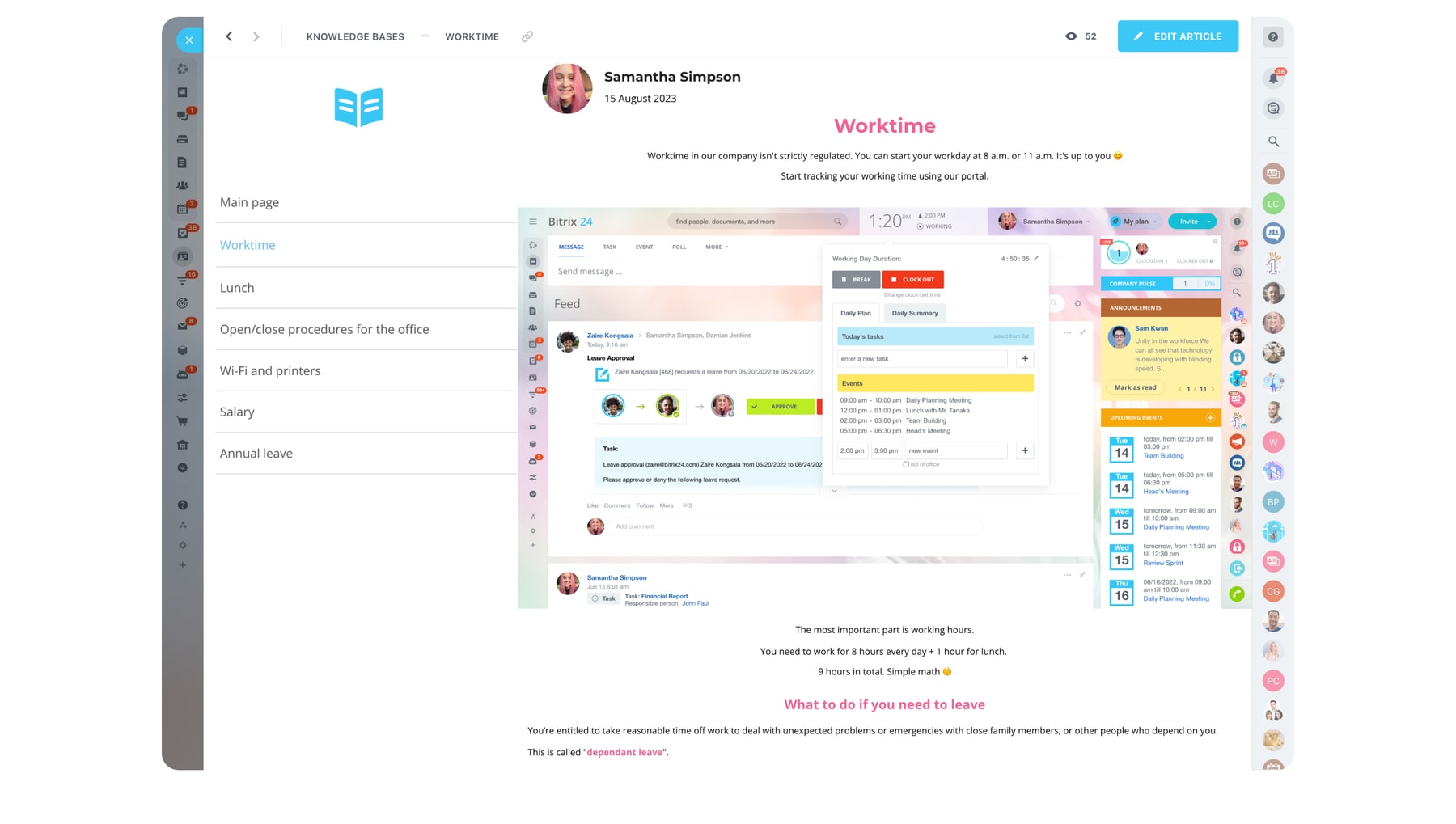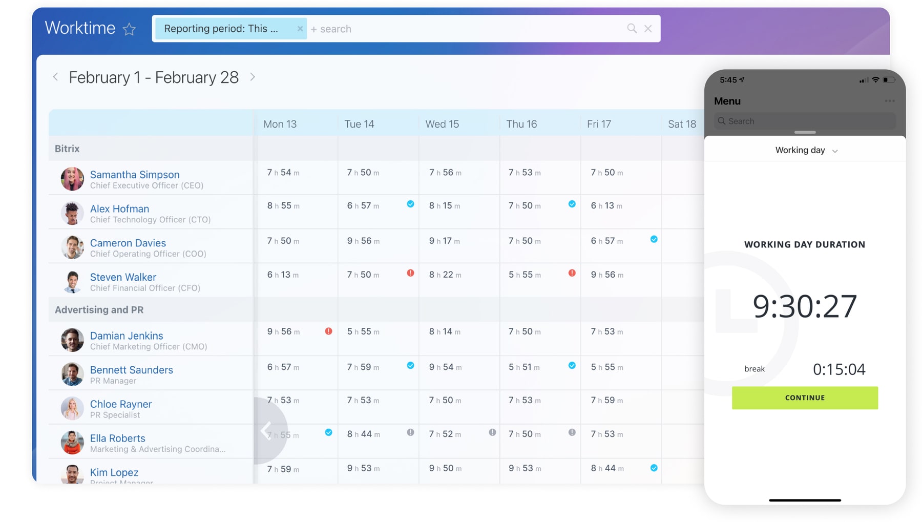 Apoya a tu equipo de recursos humanos con las herramientas para la administración de clientes que necesitan. Haz un seguimiento de las planillas de horarios, programa el tiempo libre, crea informes y recopila datos para su análisis. También tendrás acceso a redes sociales en la oficina.