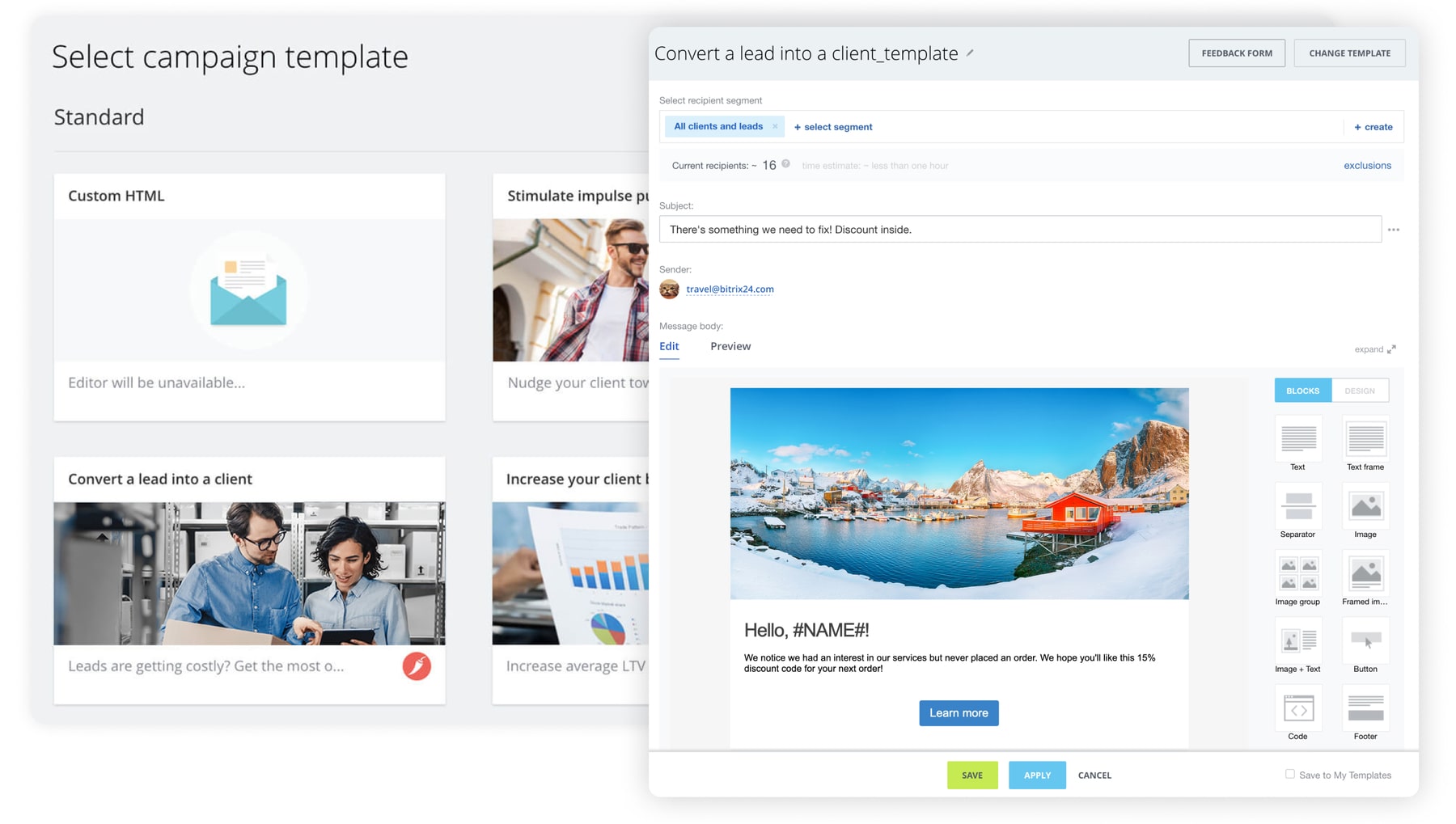 Contar con una excelente herramienta de CRM como Bitrix24 significa que puedes usar las herramientas del administrador de clientes para rastrear prospectos, tomar notas y ver el progreso del cliente a través del pipeline.