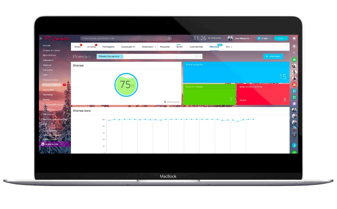 Con Bitrix24, hay diversos canales de comunicación que mantienen a los equipos en contacto constante en tiempo real. Mediante gráficos, plantillas de tareas y canales de chat, los gerentes pueden obtener informes en tiempo real sobre los trabajos en curso. Los equipos también pueden comunicarse en tiempo real para mantenerse en contacto y actualizados sobre los proyectos que están trabajando. Incluso si los equipos se encuentran en diferentes ubicaciones, pueden trabajar como si estuvieran reunidos en persona. La gestión de tareas es más sencilla cuando los administradores pueden ver todas las tareas que se están trabajando en tiempo real. Y lo más importante, contar con funciones de colaboración en tiempo real ayuda a los equipos a ser más productivos ya que se mantienen en contacto y trabajan juntos.