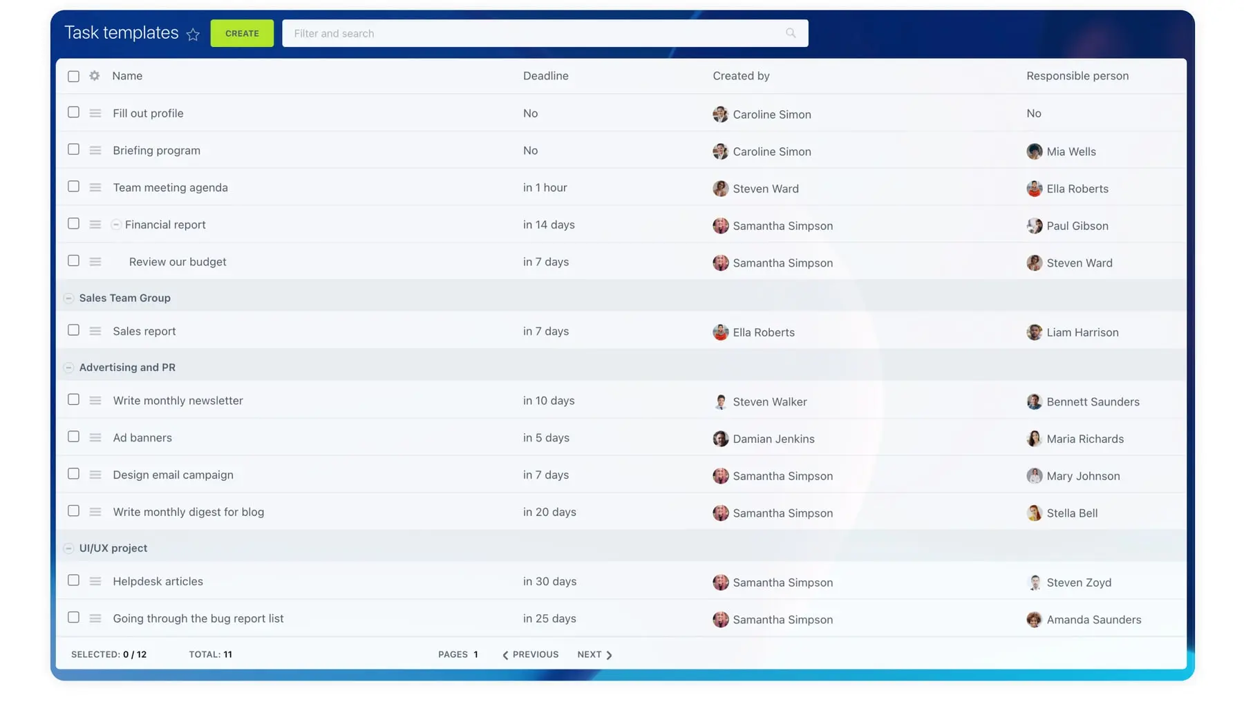 Muchas de las tareas que debe completar un jefe de proyectos son recurrentes. El jefe de proyectos debe completar la asignación de tareas semanales y mensuales. Con ayuda de los flujos de trabajo automatizados, los jefe de proyectos pueden asignar una tarea una vez y configurar la automatización. La automatización es uno de los beneficios de contar con plantillas personalizables. Las tareas son fáciles de configurar de forma regular, ya sea semanal, quincenal, mensual o cada 10 días. De esta manera, la administración de la tareas no toma mucho tiempo al inicio de cada semana y los empleados sabrán qué tareas tienen en espera.