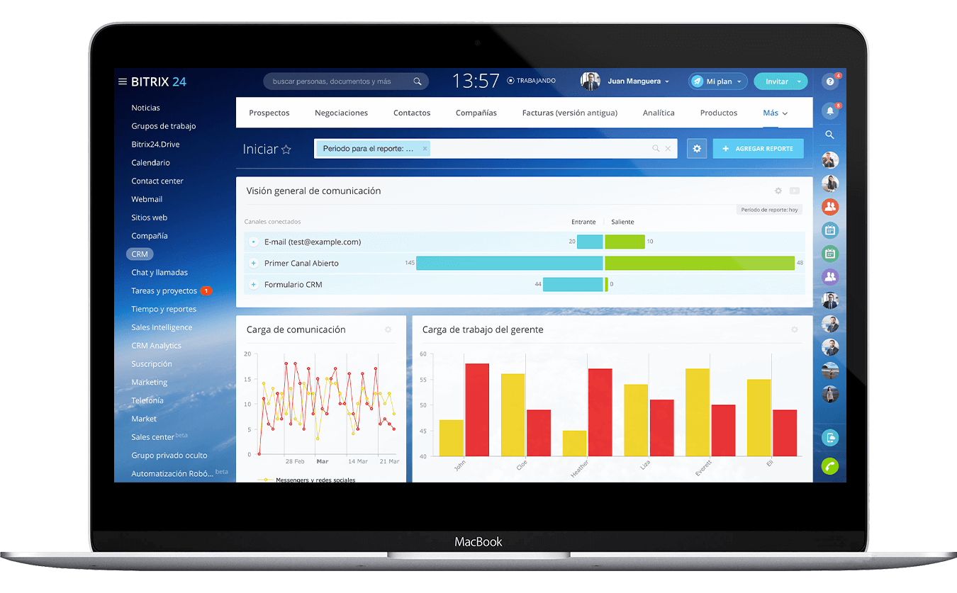 Bitrix24 es un espacio de trabajo online diseñado para ser utilizado por un grupo de personas para ventas, marketing, gestión de proyectos y otras actividades. Cuenta con CRM, tareas, chats, reuniones online y más de 30 herramientas.