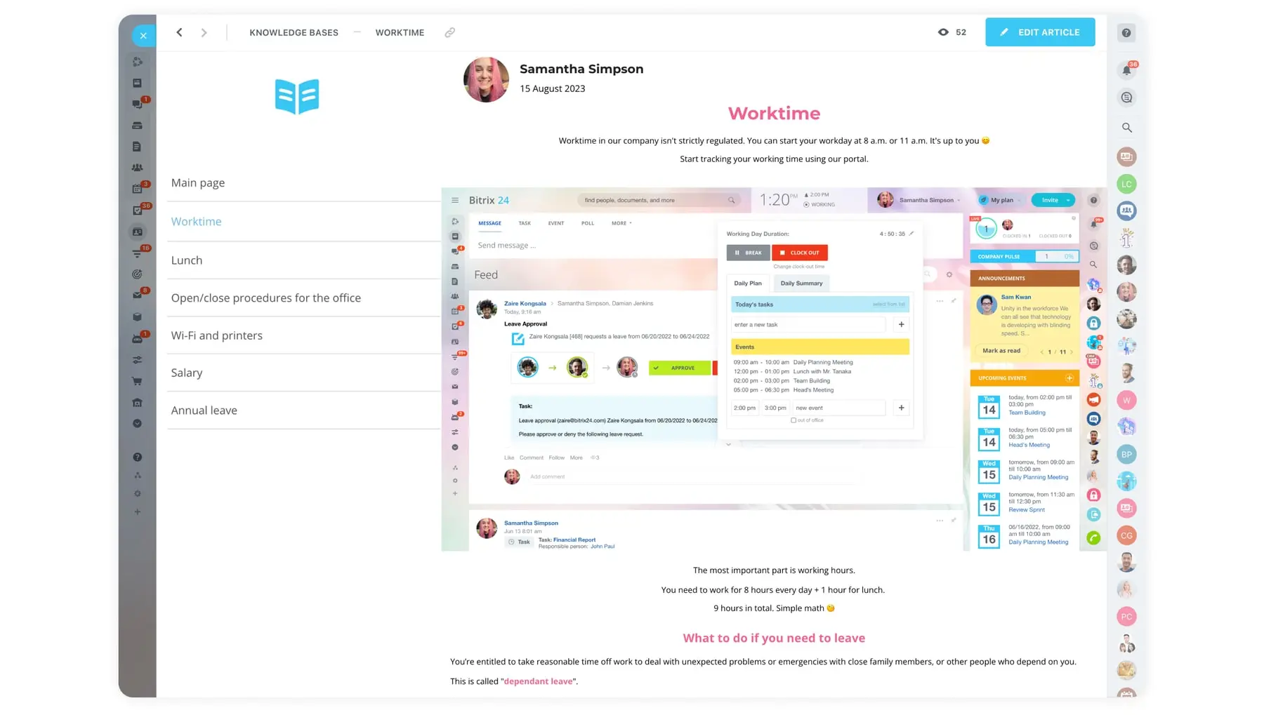 Ahora puedes llevar Bitrix24 contigo a cualquier lugar. Nuestra aplicación móvil está diseñada para permitir que el usuario administre el trabajo y las tareas desde su smartphone. Esto también se aplica al servicio al cliente. Si un cliente se pone en contacto contigo, tendrás la opción de responderle rápidamente, incluso si no estás en la oficina. La flexibilidad es esencial para proporcionar un excelente servicio al cliente.