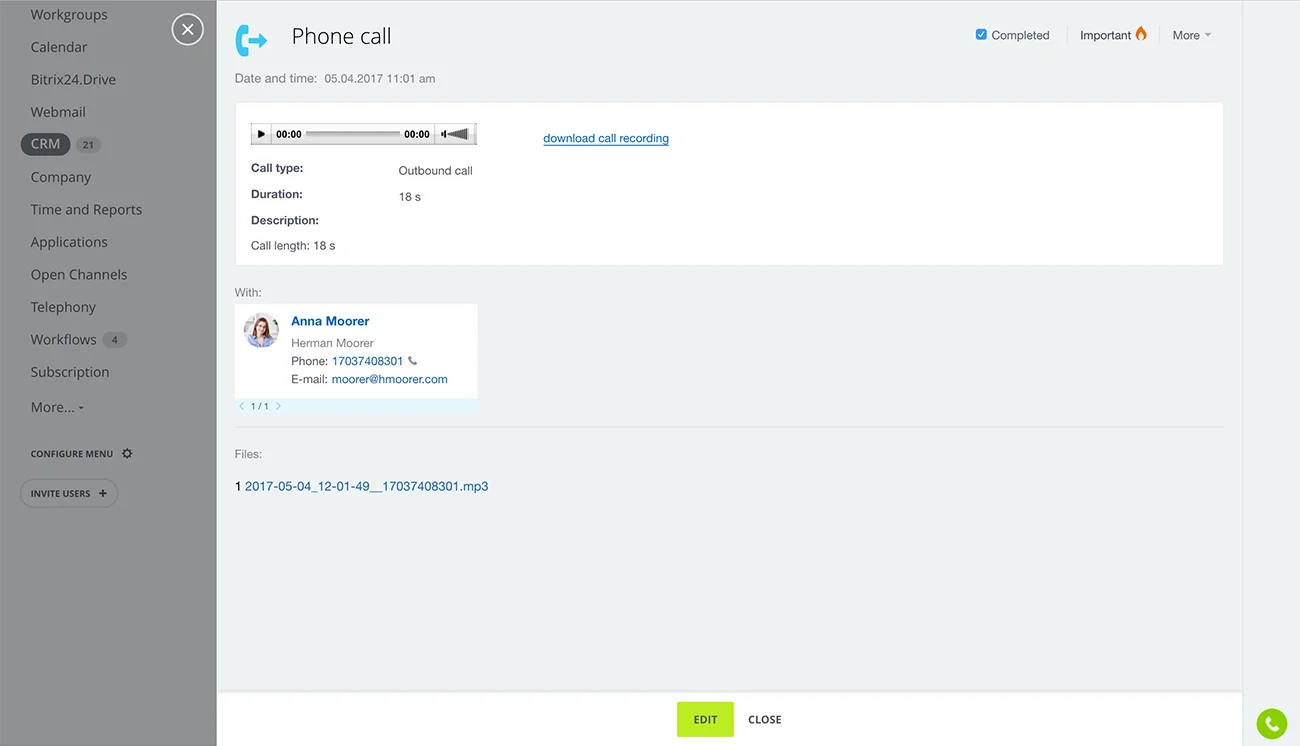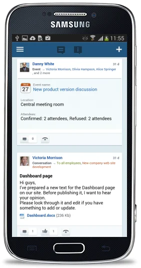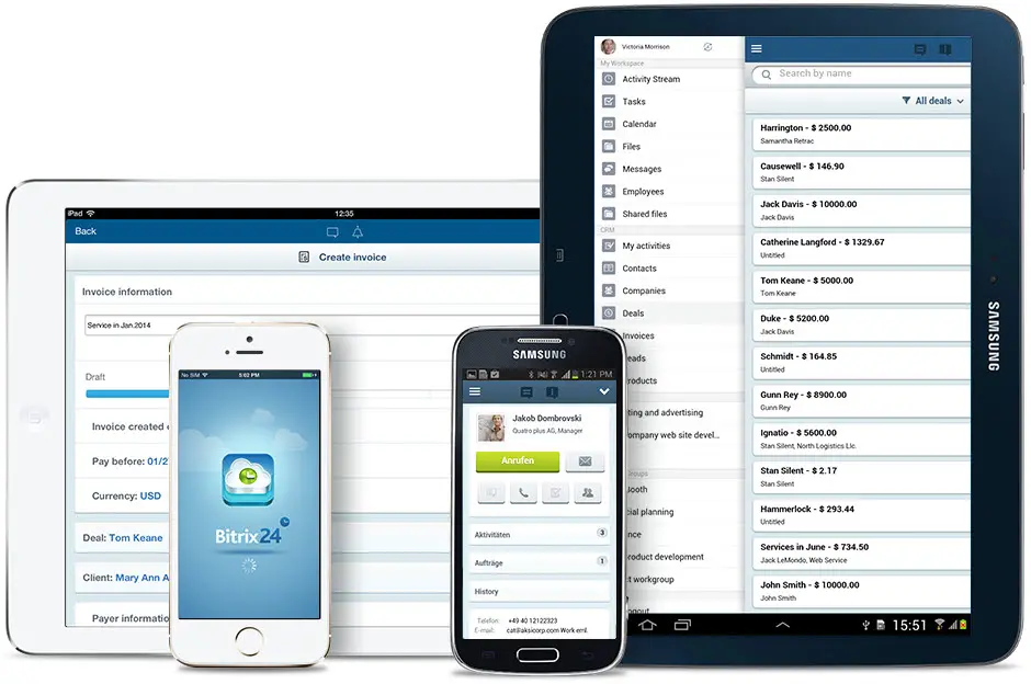 Acceda al software de la base de datos de sus clientes desde cualquier lugar con la aplicación móvil Bitrix24. Todo lo que está disponible en su escritorio será accesible en su aplicación.