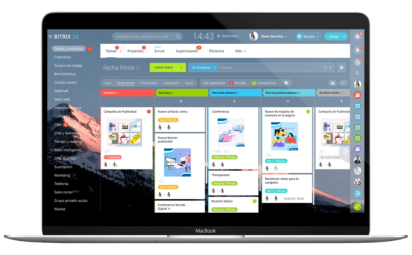 Errores de gestión, deadlines no alcanzados, tareas no sincronizadas, probablemente ya sabes que la administración de proyectos nunca ha sido fácil. Algunos problemas simplemente son imposibles de prevenir, pero mientras estés equipado con las herramientas adecuadas, podrás resolver cualquier problema. Para todo lo que tengas que definir, estructurar y asignar, Bitrix24 está ahí para ayudarte. Nunca había sido tan fácil mejorar la productividad, manejar los flujos de trabajo y completar proyectos. Disfruta de lo que más te guste de tu trabajo y pon todo lo demás en piloto automático.