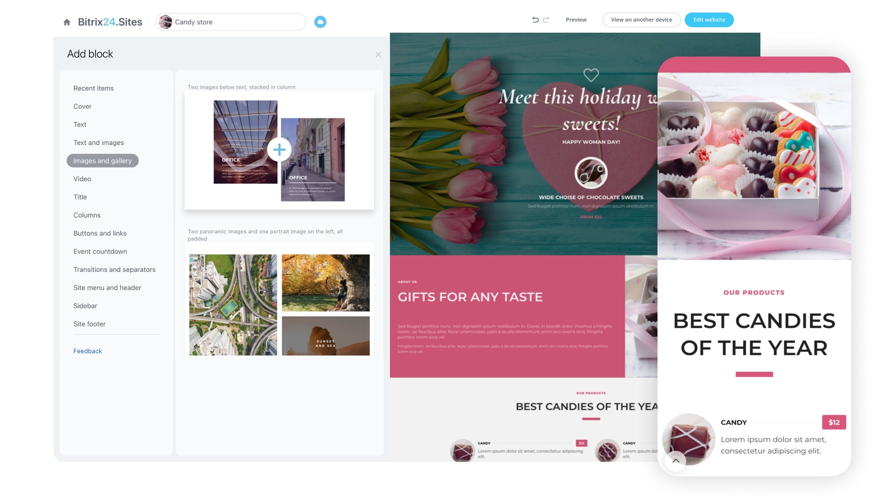 Todas las empresas necesitan un sitio web. Ya sea que te dediques a las ventas online o no, las personas buscarán información online sobre tu negocio. Tener un sitio web te ayudará a informar al público objetivo. Aunque crear un sitio web puede parecer algo dificil, Bitrix24 lo hace simple y rápido. Estas son algunas de las características más populares que ofrecemos a nuestros usuarios cuando construyen su sitio con la ayuda de nuestros servicios.