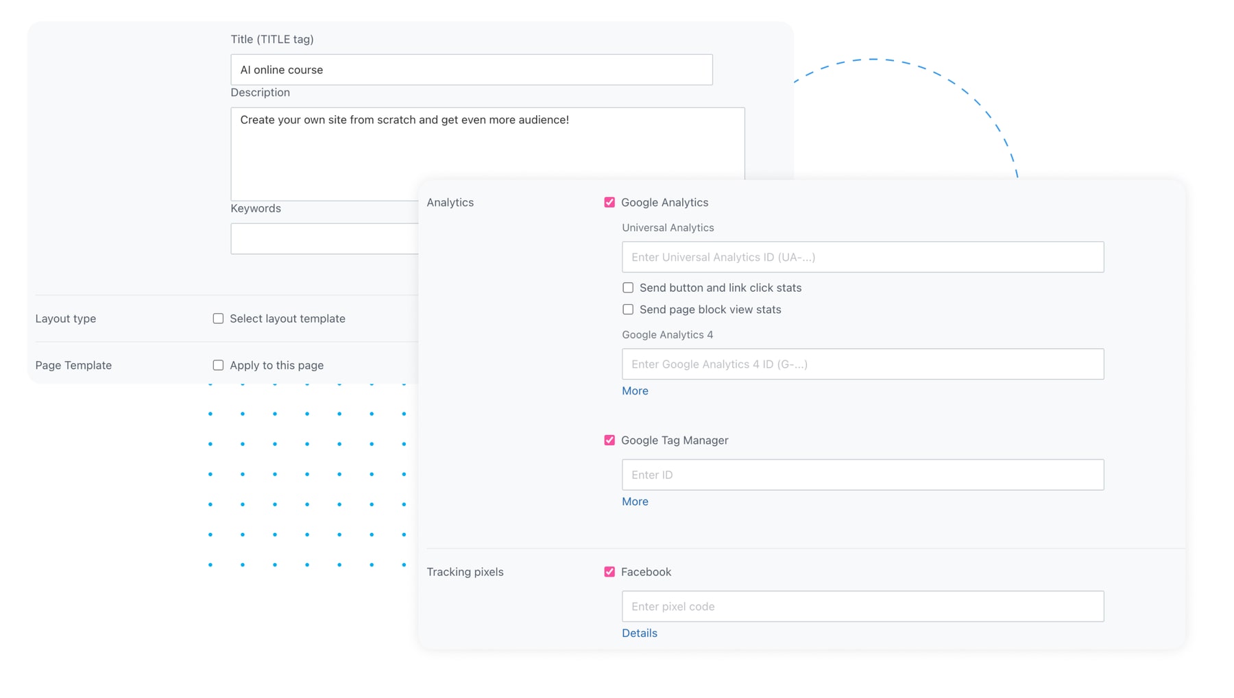 Crea tu sitio web tan grande o tan pequeño como lo necesite tu empresa. Ya sea que prefieras una sola página o un sitio indexado enorme con varias pestañas, nosotros podemos ayudarte. Nuestras herramientas le permitirán a tu empresa vincular cualquier herramienta o función que desees para obtener un mejor desempeño. No hay límite para las funciones que puedas agregar ni la cantidad de páginas que puedas crear con nuestro constructor de landings para tu sitio web.