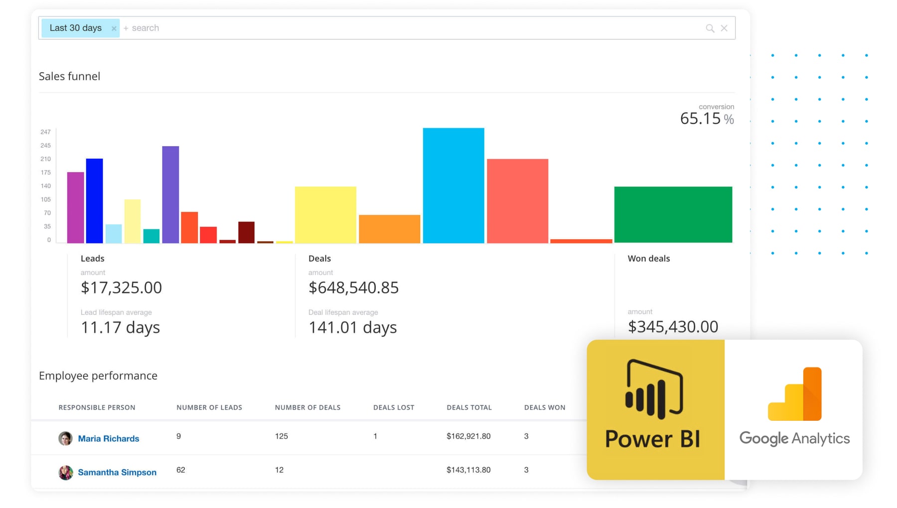 Tener a Bitrix24 como hosting de su sitio web y usar las herramientas del software CRM es una gran combinación. Estas funciones pueden trabajar en conjunto para reunir tus herramientas esenciales en una plataforma de software para la administración de oficinas. Sincroniza fácilmente tu panel con el sitio web para ver instantáneamente tus análisis sobre las visitas al sitio. El uso de un CRM para administrar toda la información del sitio es conveniente para administrar un negocio. Tener toda la información de tus formularios web, chats en vivo, el sitio web y tus herramientas de software del CRM en una sola plataforma te ayudará a administrar toda la información de manera más eficiente e evitará la perdida de prospectos.