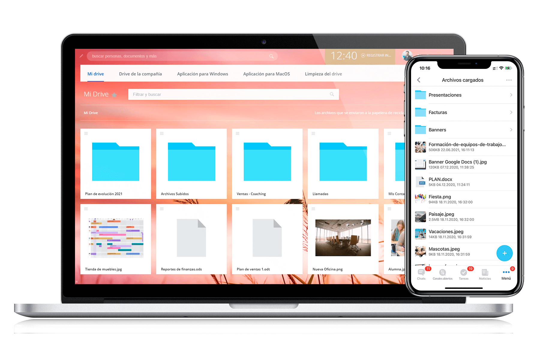 Colabora con usuarios externos en un espacio de trabajo compartido y compacto que incluye chat, videollamadas, tareas, almacenamiento, calendario y otras herramientas.