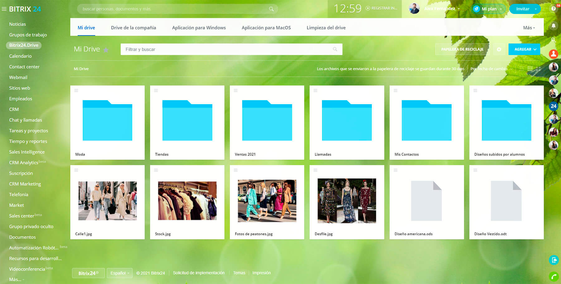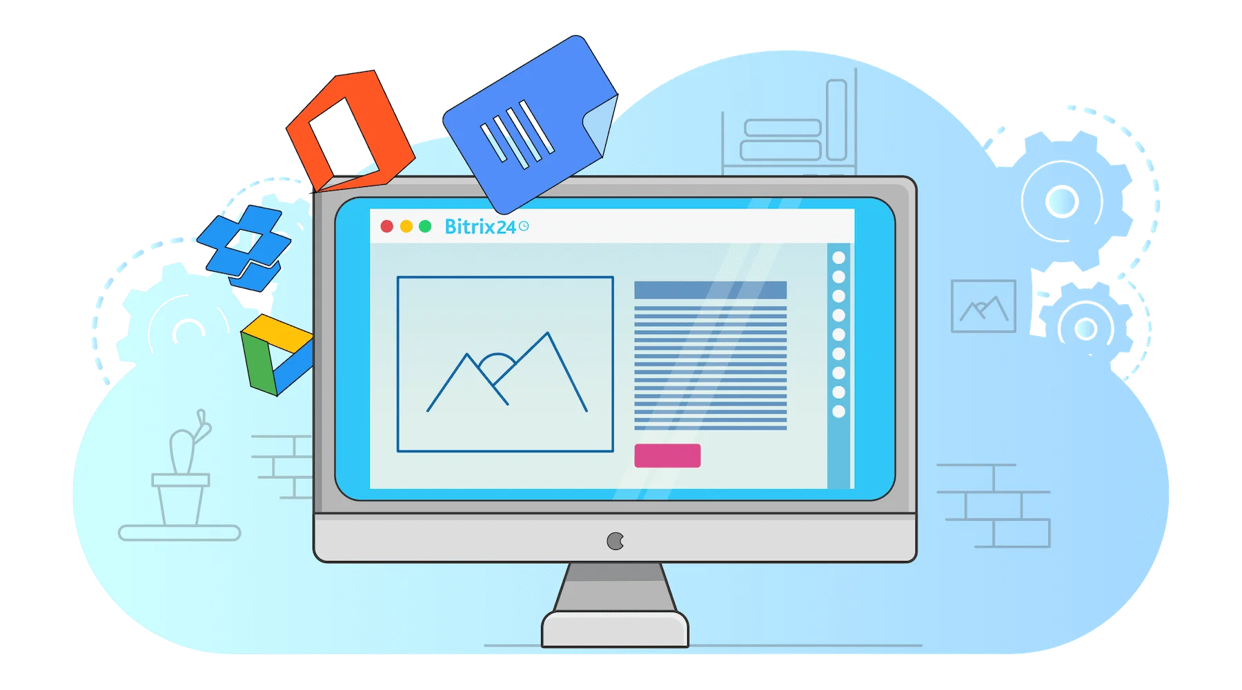 El software de almacenamiento de archivos web de Bitrix24 te permite crear, editar y compartir cualquier archivo de trabajo. Fácilmente accesible desde dispositivos móviles y de escritorio, e integrado con Google Docs y Office 365, el drive de Bitrix24 es la opción perfecta para tus necesidades de gestión de proyectos.