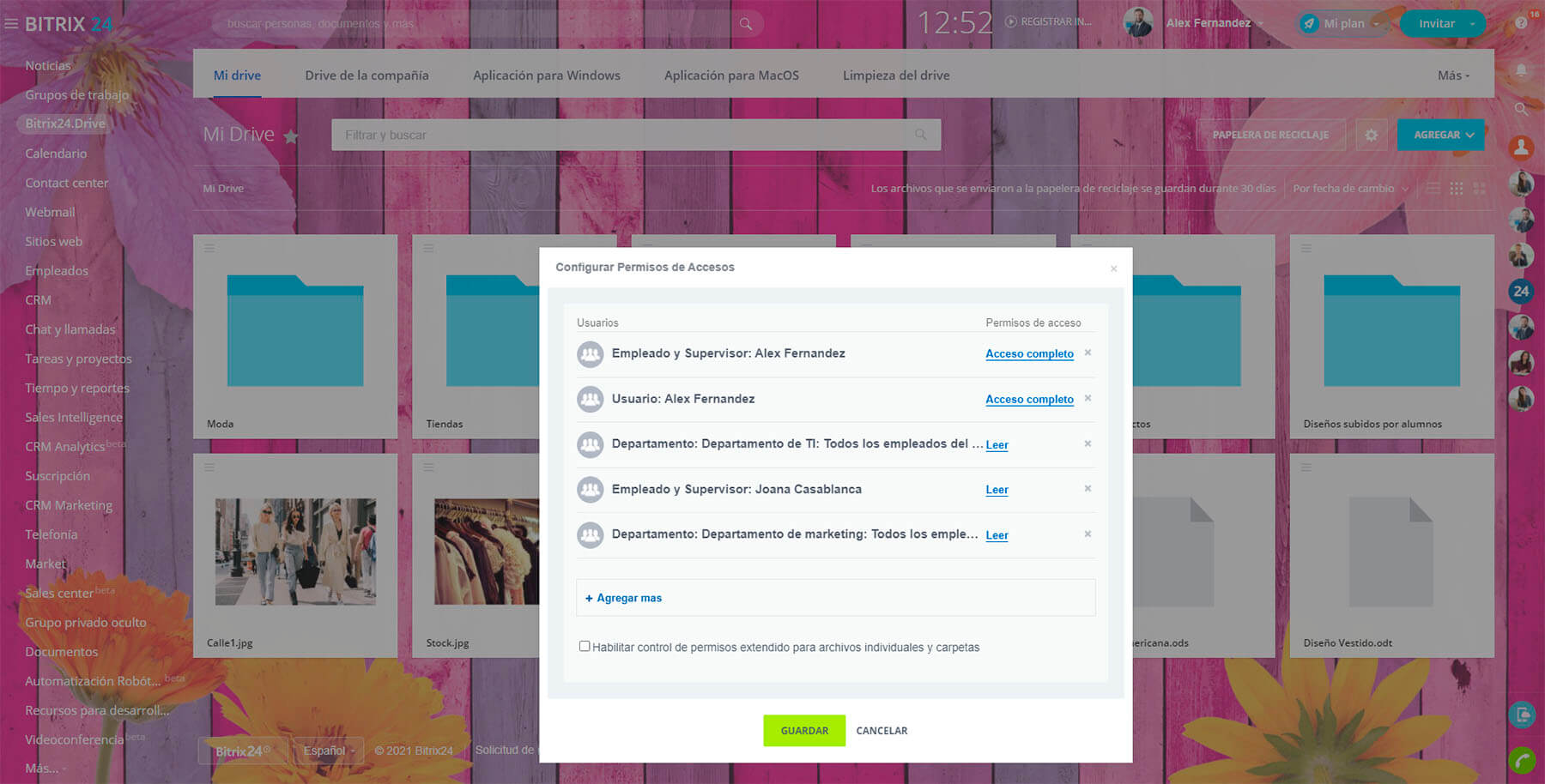 Algunos archivos y carpetas de tu empresa no deberían ser accesibles para todos (información contable o la información de tu gran proyecto secreto). Con el software de almacenamiento y difusión de archivos de Bitrix24, puedes restringir el acceso a archivos y/o bloquearlos para evitar cambios accidentales.