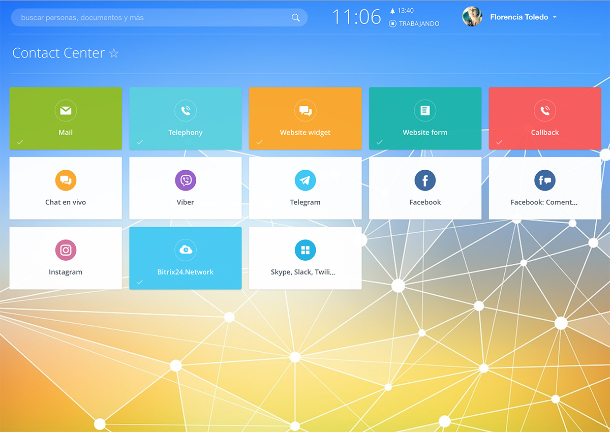 No limites a tus visitantes del sitio web al chat en vivo. Puedes añadir más herramientas de comunicación a tu widget incluyendo WhatsApp, Telegram, Instagram Direct, etc. y manejar toda la comunicación con el cliente desde una plataforma omnicanal en tu Bitrix24.