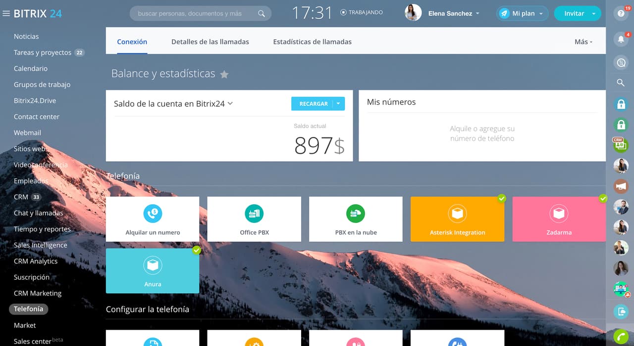 La telefonía de Bitrix24 te permite alquilar números de teléfono locales, crear extensiones de números de teléfono internos para sus empleados, configurar filas de espera y desvíos de las llamadas, y mucho más.
