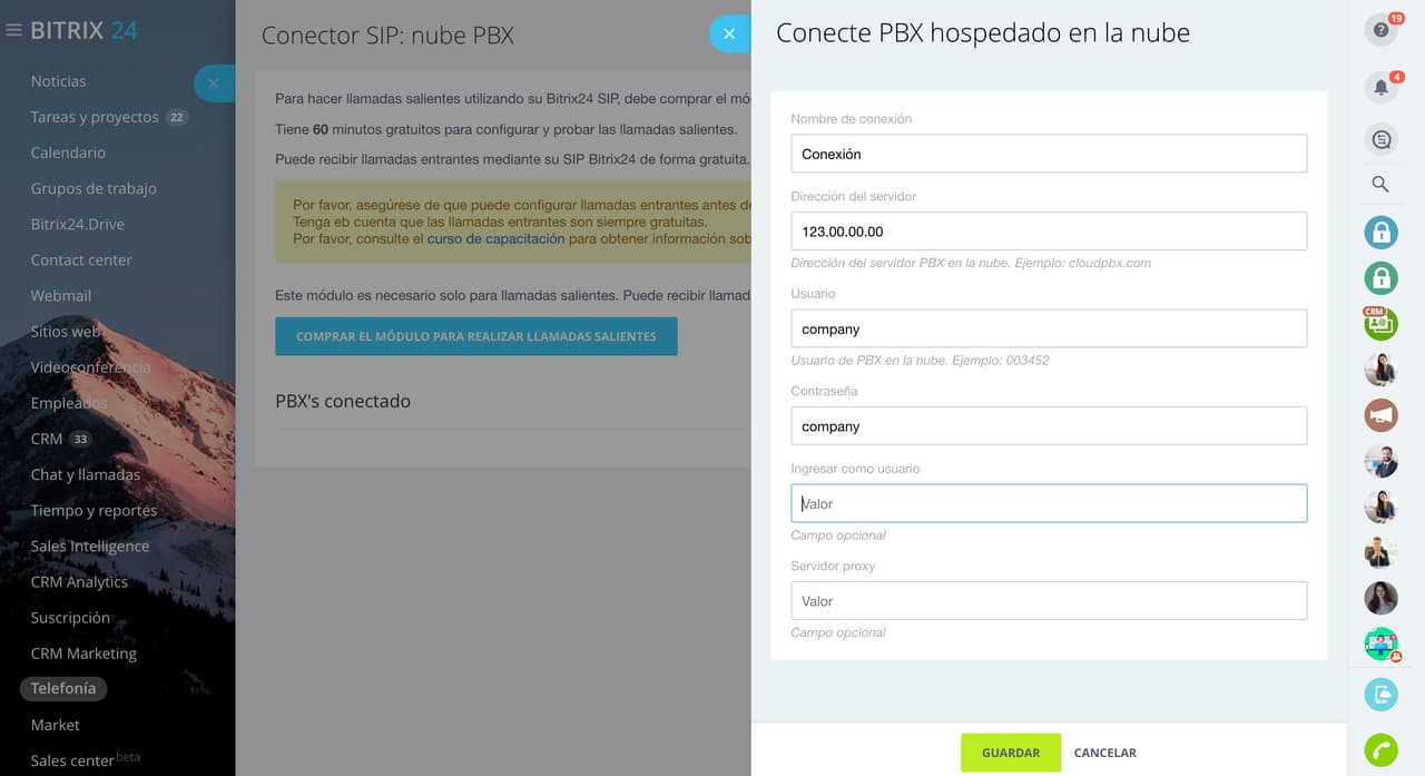 Comenzar gratis Solicita asistencia de los socios de Bitrix24Cookies: Este sitio web utiliza cookies por razones de análisis y técnicas. Las "Cookies de análisis" son insertadas por Google Analytics para ayudarnos a conocer de qué países son nuestros visitantes, las páginas que visitan y las acciones que realizan en este sitio. Las "Cookies estrictamente necesarias", como su nombre indica, son un tipo de cookies que son necesarias para el funcionamiento correcto de ciertas funciones de este sitio web, como el chat en vivo. Desactivar estas cookies desactivará también el acceso a esas funciones y disminuirá su experiencia en el sitio web.