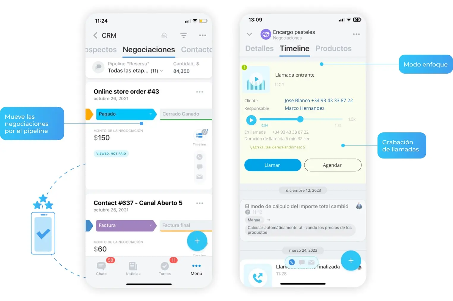 Gestiona tus ventas, clientes y equipo desde tu smartphone con la aplicación móvil de Bitrix24.