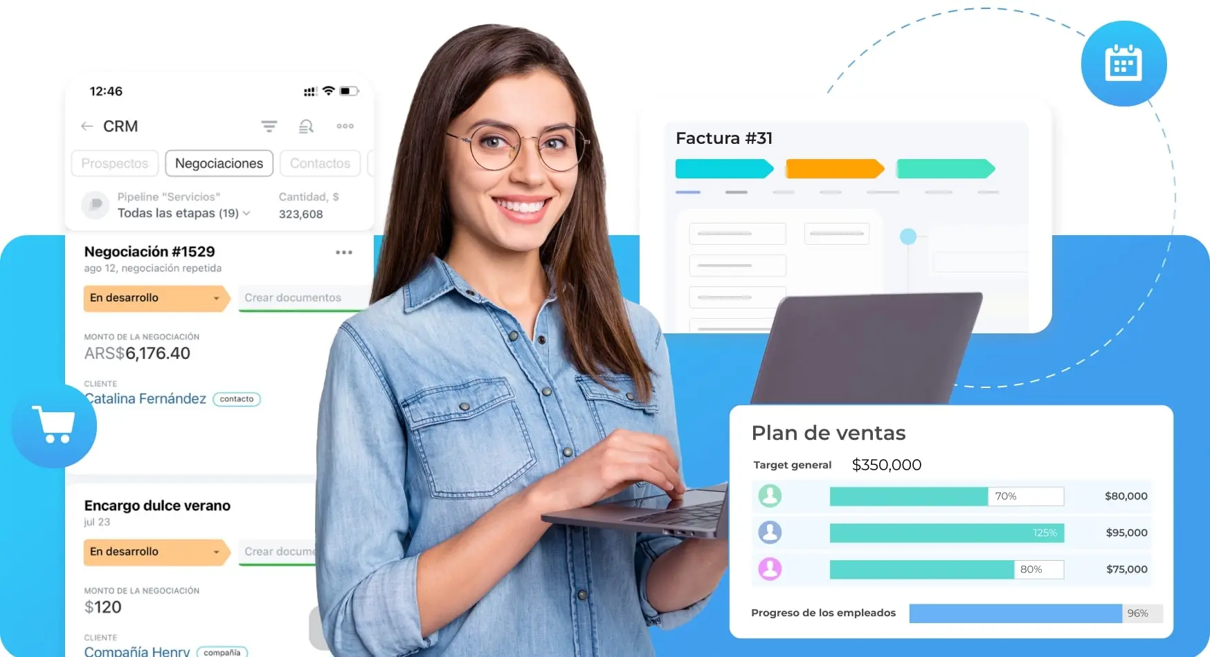 Todo lo que necesitas para potenciar tus ventas está aquí: cotizaciones, facturas, pagos, catálogo de producto, gestión del inventario, firma electrónica y más.