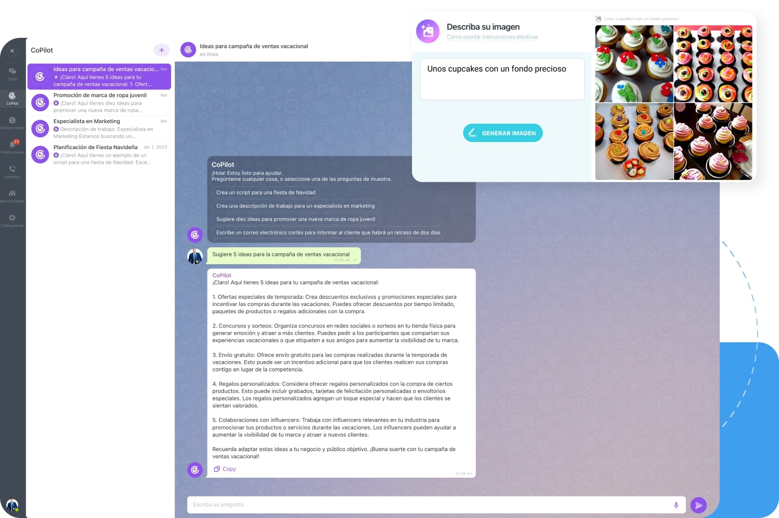 Usa nuestro asistente de IA, CoPilot, para crear ideas, escribir anuncios, generar resúmenes, responder comentarios y más.