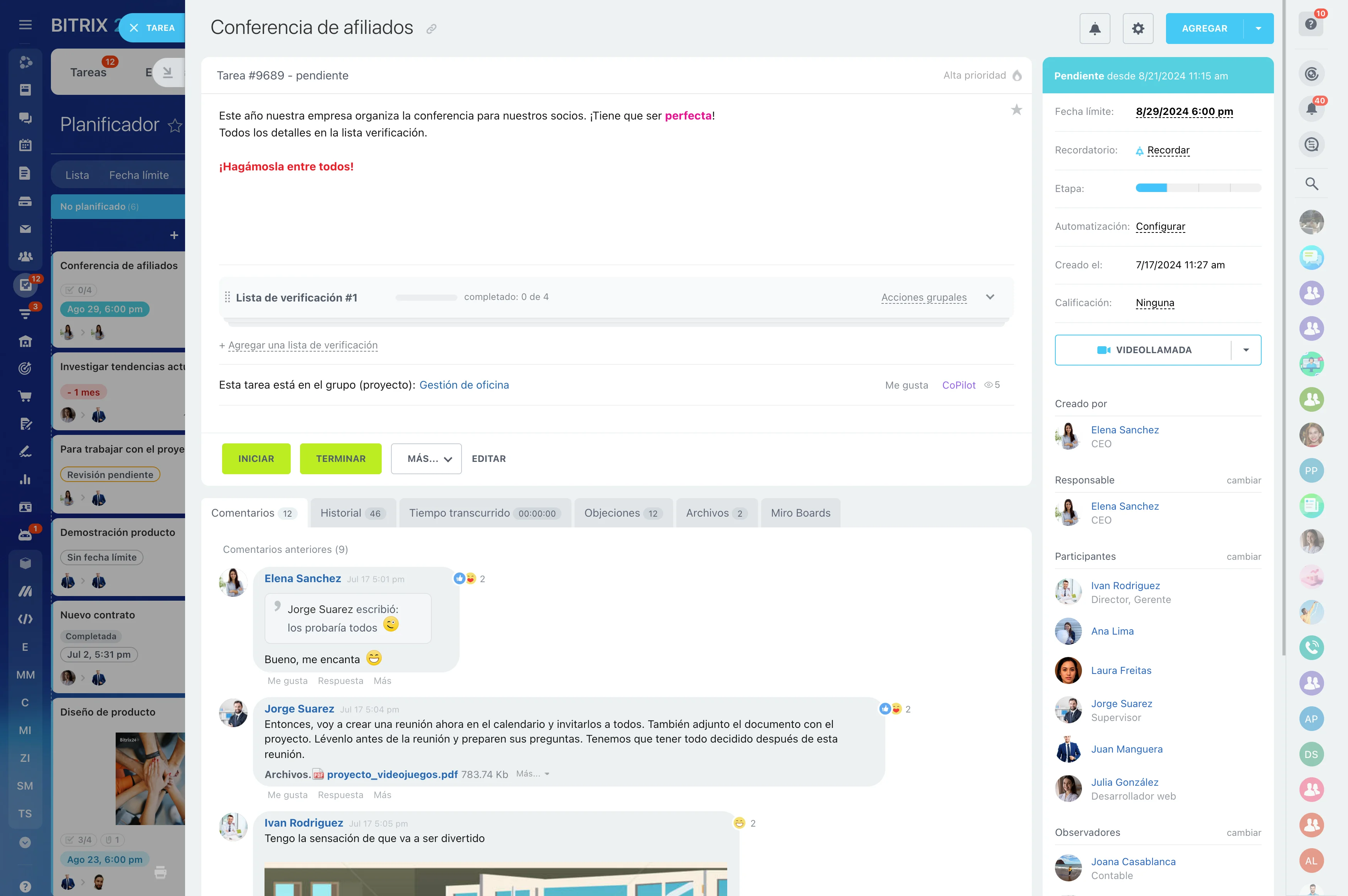 Los comentarios en Bitrix24 son una forma fácil y sencilla para hablar de trabajo y compartir información importante con tu equipo. Los likes, las reacciones y las citas ayudan a añadir un toque más personalizado a la comunicación rutinaria de la oficina.
