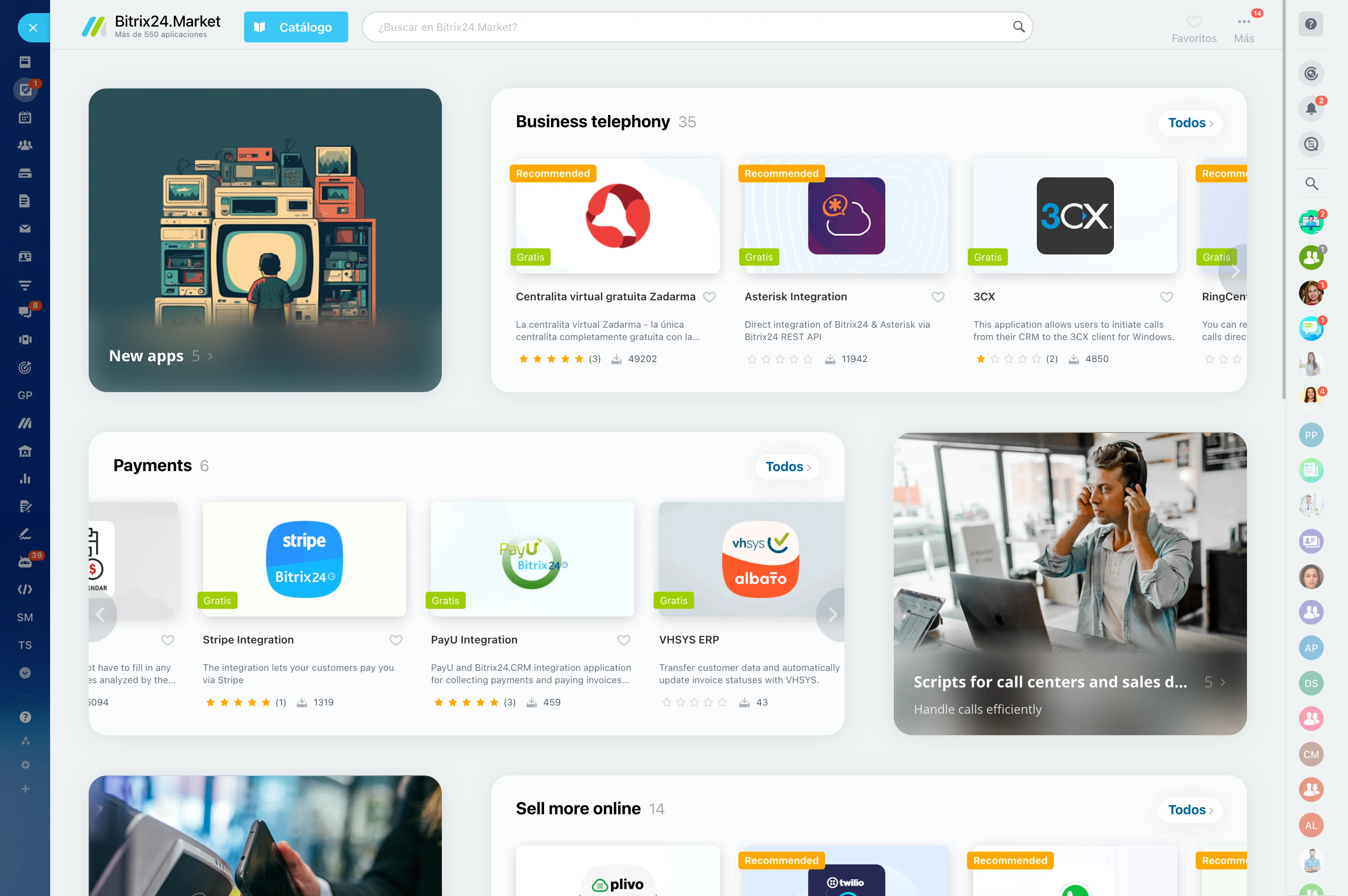 Bitrix24 Market cuenta con cientos de aplicaciones útiles, complementos, soluciones e integraciones API personalizadas para su Bitrix24, mejorando su funcionalidad y rendimiento.