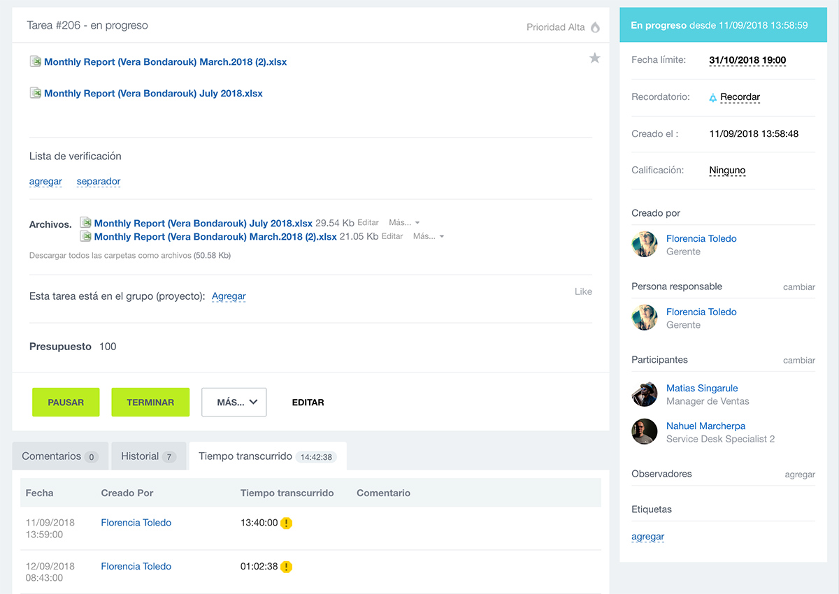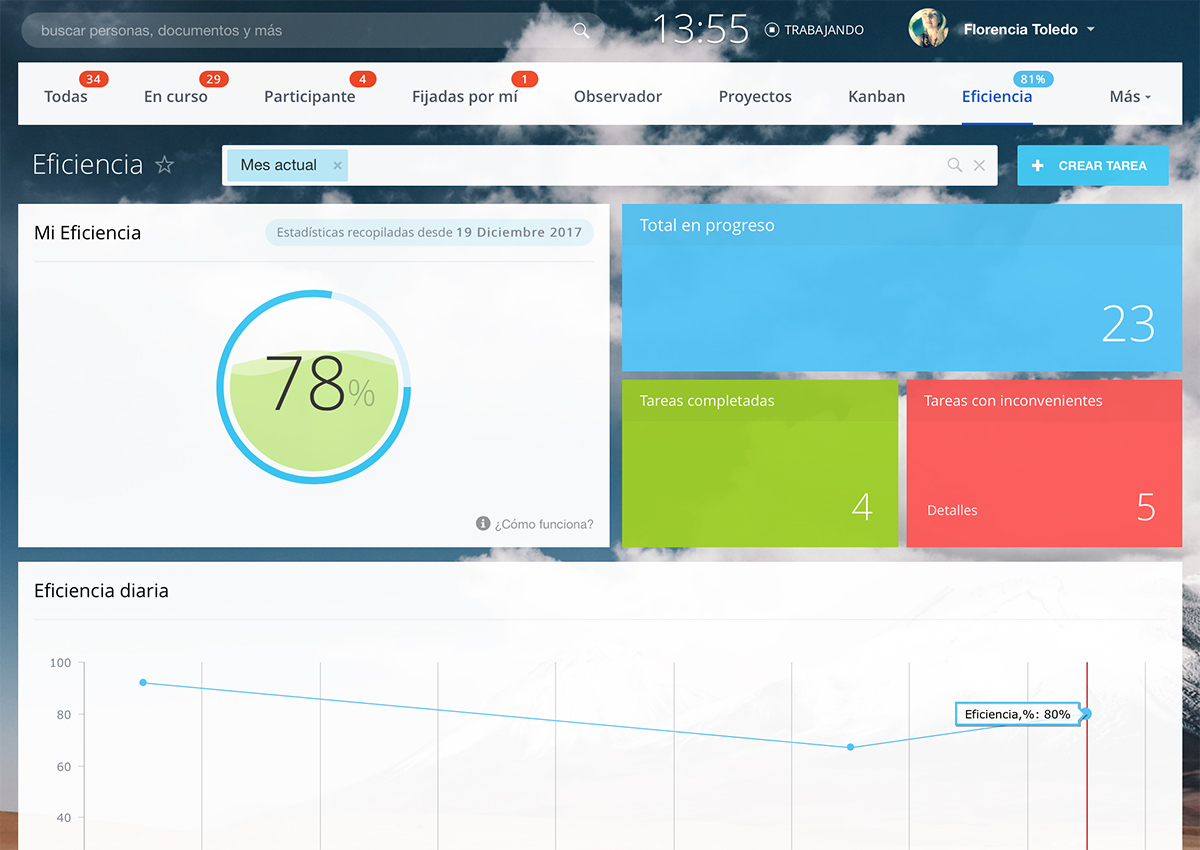 Las tareas que tengan una actividad reciente en curso se mostrarán en la parte superior de la lista de tareas para ayudarte a concentrarte en lo que realmente importa. Una herramienta muy útil para la gestión del trabajo.
