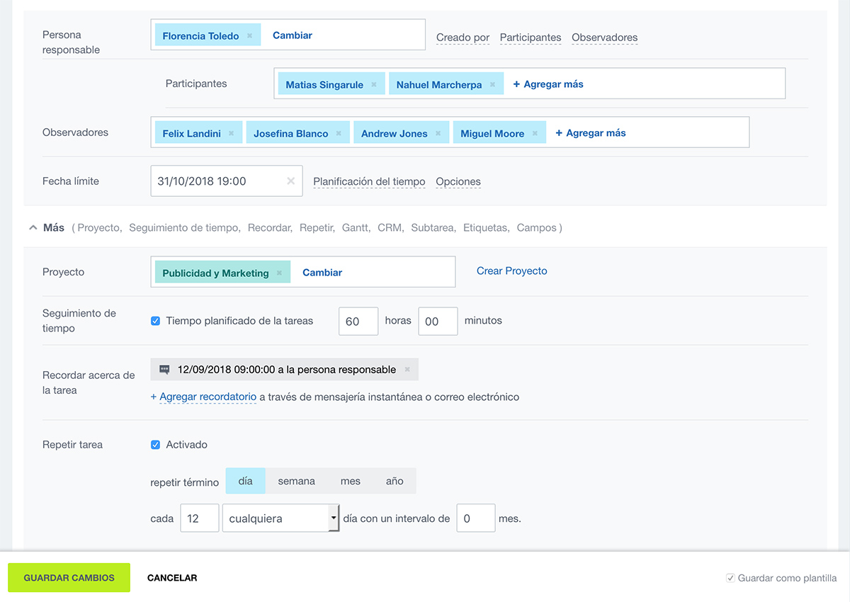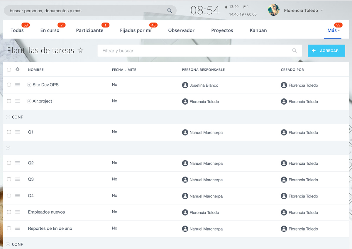 Si trabajas con las mismas tareas y proyectos una y otra vez, puedes guardarlas como plantillas para ahorrar tiempo.