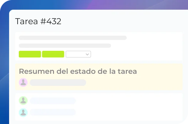 Cuando un comentario se marca como resumen de estado de una tarea, se fija al inicio del hilo, facilitando su lectura para el supervisor y todas las personas involucradas.